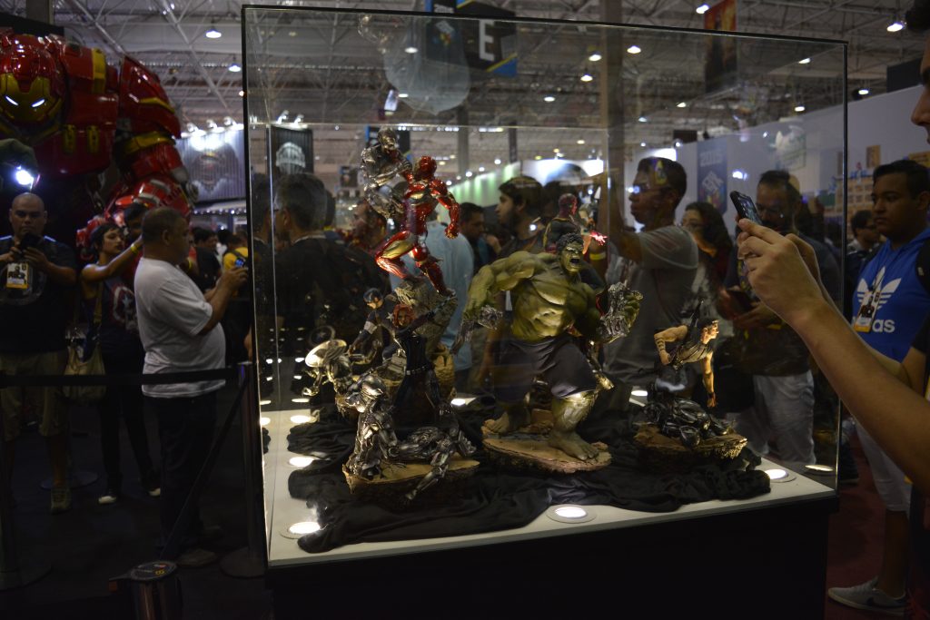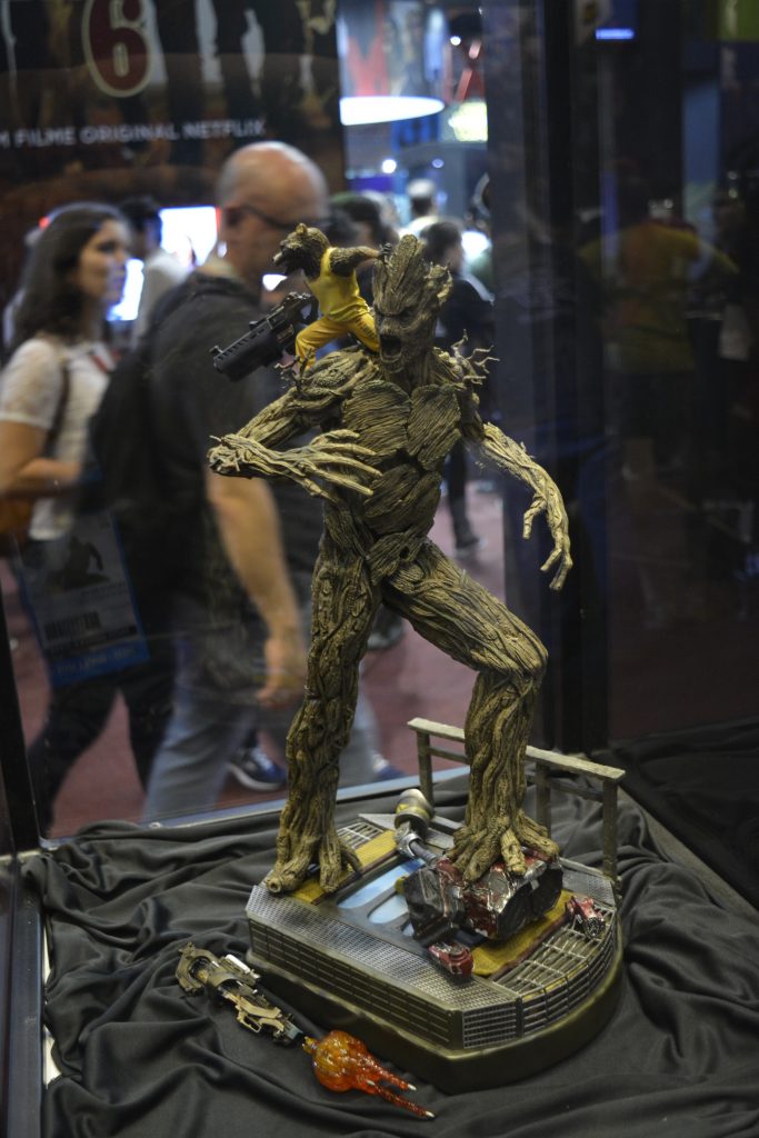 Na parte de action figures existia uma variedade absurda, com diversos preços para a competitividade das vendas, favorecendo os visitantes a encontrar o que buscavam para comprar. Eu mesmo comprei meu Pop Funko do Baby Groot. Itens exclusivos e lindos estavam lá para quem queria (e podia) pagar. Os valores estavam meio salgados. Acredito que em eventos desse tipo, poderiam elaborar maiores descontos para os visitantes se sentirem atraídos para comprar. Muitos dos itens que tinha interesse achei mais caro do que quando procurava aqui fora, tornando inviável a compra dos mesmos. Espero que nesse quesito, a CCXP possa elaborar uma maneira de viabilizar um custo menor do que é vendido normalmente.